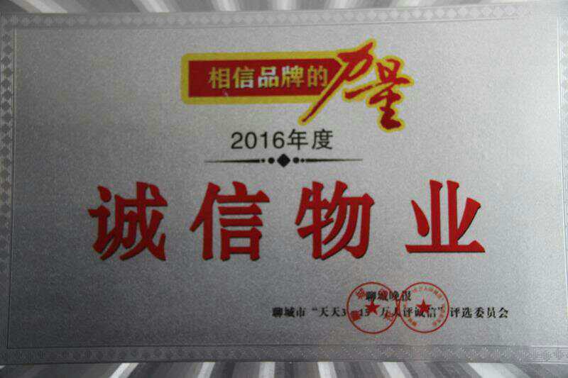 2016年金安物业被聊城市委宣传部、聊城市精神文明建设委员会、聊城市工商行政管理局评为“文明诚信民营企业”。