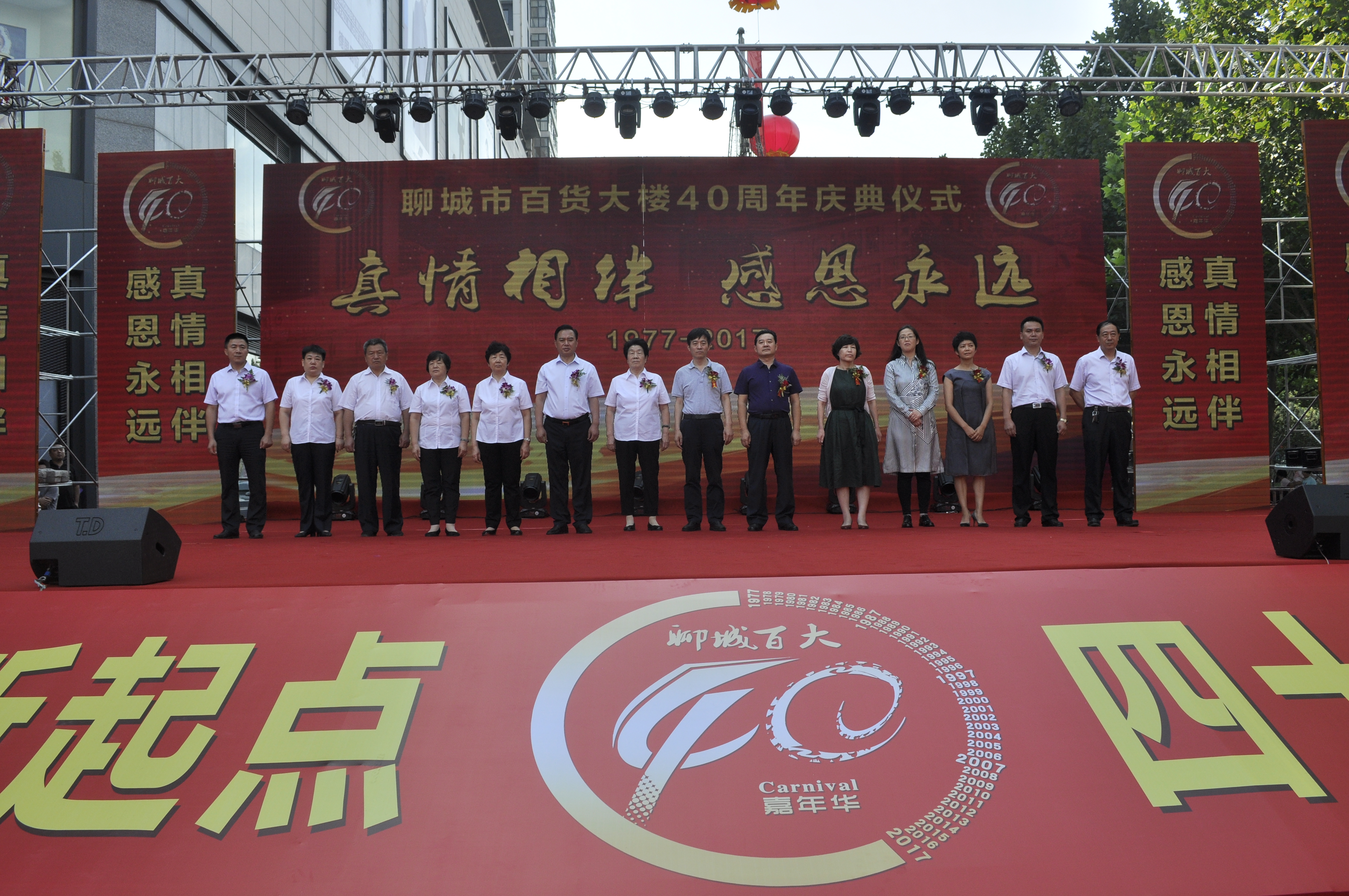 “龙腾虎跃百大庆,盛世欢歌四十年。”我们完全有理由相信,聊城市百货大楼有限责任公司这艘鲁西商业航母,一定会以此次四十周年庆典为契机,诚实守信促提升,以德为本谋发展,在建设百年企业的征程上,昂首阔步、奋勇向前,为我市的经济社会发展再立新功。