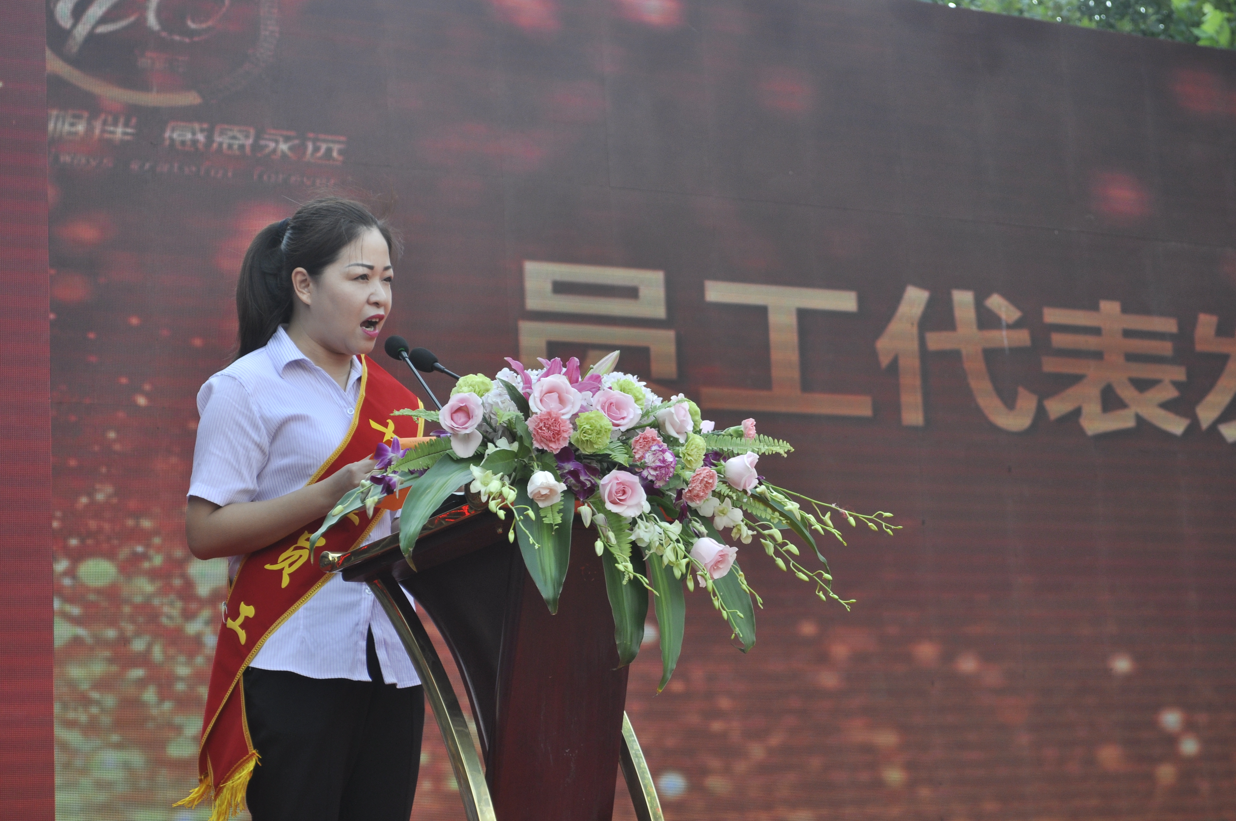 庆典仪式后,在兴华大酒店举行了隆重的答谢午宴。丰盛的美味佳肴、精彩的文艺演出、和充满兴趣的抽奖环节令参加者啧啧称赞。由百货大楼部分领导班子成员集体表演的诗歌朗诵《感恩于心,砥砺奋进》,歌颂了百大人爱岗敬业、无私奉献、勇于创新的奋斗历程,抒发了百大人对社会心怀感恩、不忘初心、真诚服务的豪迈情怀,展望了百货大楼乘风破浪、勇立潮头、大展宏图的美好未来,赢得了与会者的阵阵掌声,把答谢午宴的欢快气氛推向高潮。