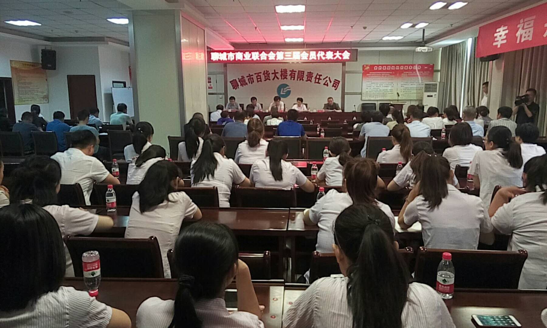 本网讯(记者 柴士增)5月29日,聊城市商业联合会第三届会员代表大会在金鼎商厦会议室召开。聊城市商会副会长李文华、聊城市百货大楼有限公司董事长许振清,以及全市相关企业的负责人总计近百人出席会议。