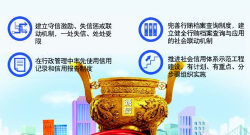 去年6月,国务院印发《社会信用体系建设规划纲要(2014-2020年)》提出,地方各级人民政府要将社会信用体系建设纳入重要工作日程。
