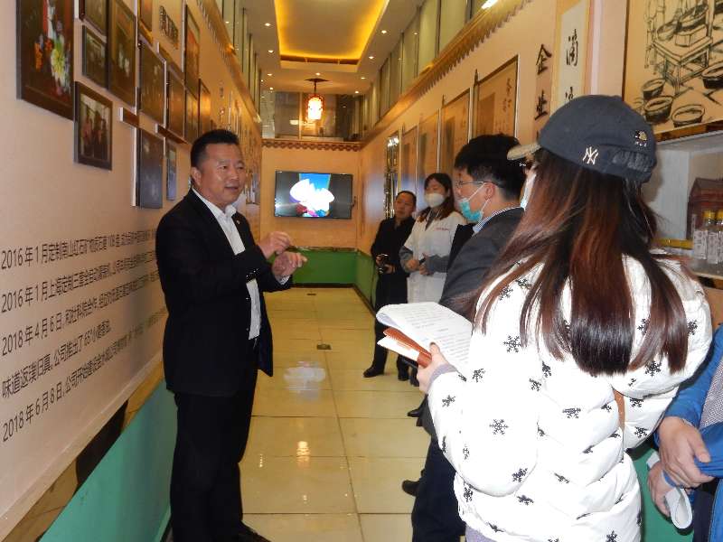 调研中,宋冰一行听取了金水城油脂有限公司董事长钱代林关于企业疫情防控和复工复产的情况介绍,对企业的厂容厂貌、生产车间、产品展厅、荣誉室、化验室进行了参观考察。在加工车间,钱代林向宋冰一行详细介绍了金水城香油的加工工艺和生产流程。当听说,金水城香油做为聊城市非物质文化遗产项目,在继承传统香油制作工作的同时,又结合现代科技,对生产线进行了升级改造提升,既确保了金水城香油油质的传统美味,有大大提高了产量和效率,宋冰一行给予了高度评价和赞扬。