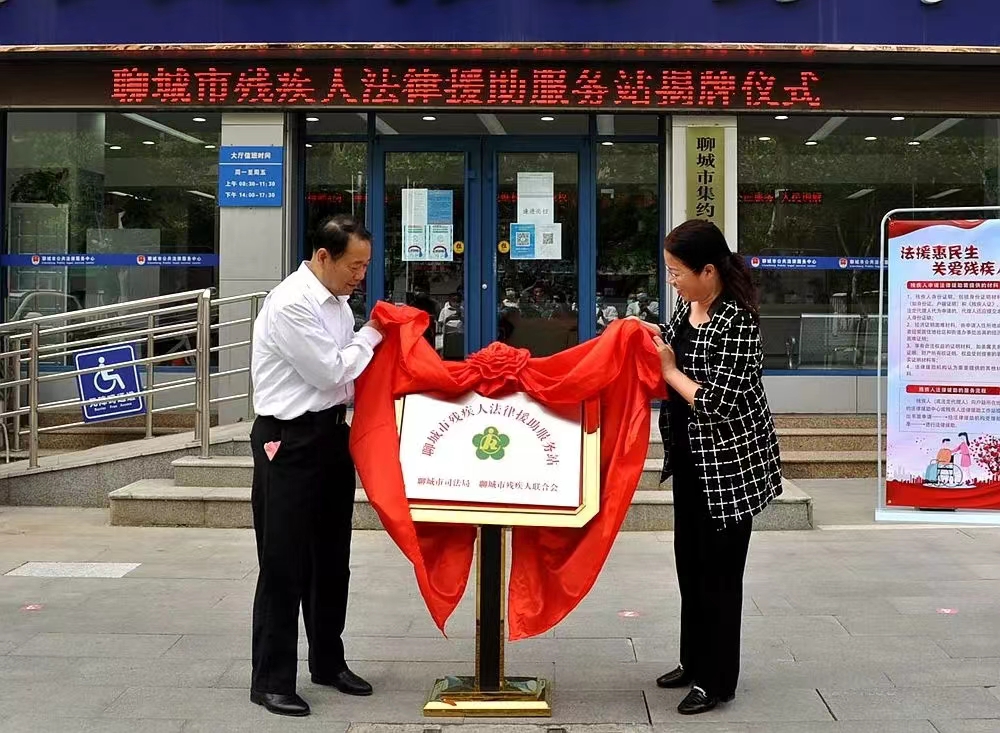 为提高残疾人法律意识和自我维权能力、营造维护残疾人合法权益的社会氛围,构建聊城特色残疾人法律服务工作体系, 5月19日上午,聊城市司法局、市残联共同举办市残疾人法律援助服务站揭牌仪式。市司法局党组书记、局长商光胜,市残联党组书记、理事长李香荣参加并分别致辞。市法律援助中心主任马奎庆主持活动,市残联四级调研员张军参加活动。